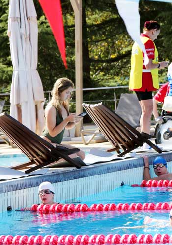Главным событием фестиваля стали соревнования по плаванию. Открытый 50-метровый бассейн пятизвездочного «Гранд Отель Поляна» расположен в живописной долине на курорте «Газпром». Рано утром спортсмены, тренеры и судьи отправились туда на трех автобусах, любуясь по дороге отрогами Кавказских гор.